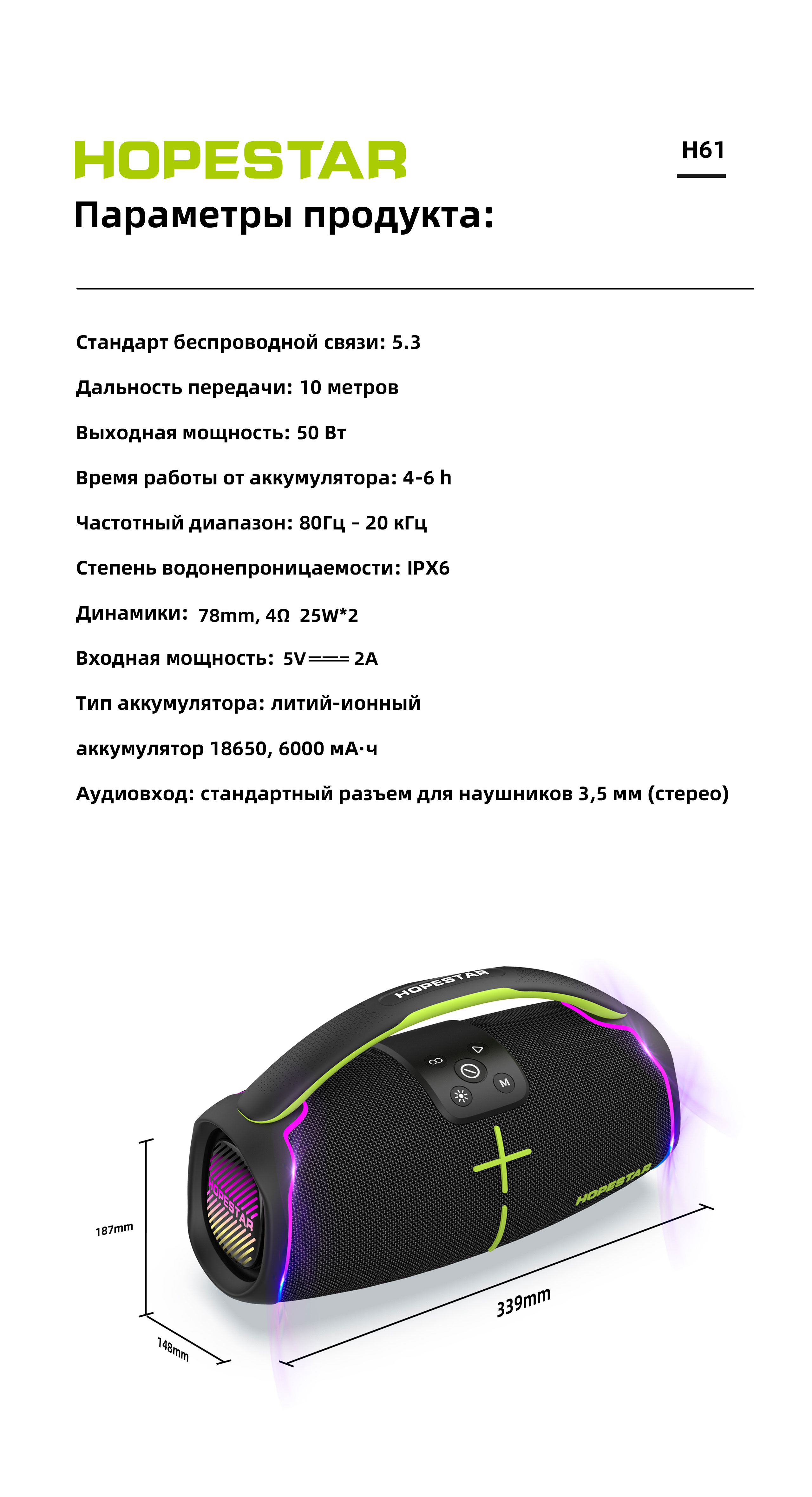 - Время воспроизведения: 4–6 часов